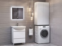 В наборе есть всё необходимое для бережного хранения. Тумба с выдвижными ящиками и навесной шкаф обеспечат место для текстиля и моющих средств. Компактные элементы экономят пространство, а минималистичный дизайн идеально подходит под любой интерьер.