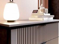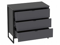 Просторные выдвижные ящики открываются на полную глубину, упрощая поиск необходимых предметов. Объемную фрезеровку на фасадах дополняют стильные ножки, благодаря которым мебель смотрится невесомо.