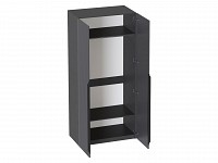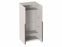 Ниша с продольной штангой подходит для платьев и костюмов на плечиках, а полки можно использовать для хранения белья и органайзеров с аксессуарами. Дверцы декорированы рифлеными линиями и стильными ручками.