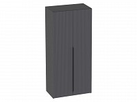 Ниша с продольной штангой подходит для платьев и костюмов на плечиках, а полки можно использовать для хранения белья и органайзеров с аксессуарами. Дверцы декорированы рифлеными линиями и стильными ручками.