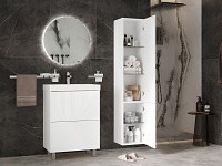 Модель оснащена тремя стеклянными полками, на которых удобно хранить косметику и уходовые средства. Фурнитура с доводчиком обеспечивает плавное и бесшумное движение створок. Влагостойкие материалы гарантируют долговечность мебели и защиту фасадов от воды.