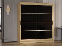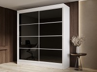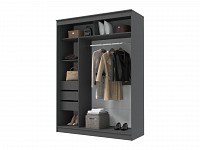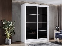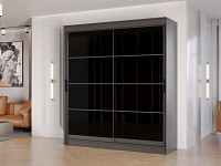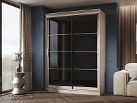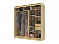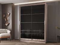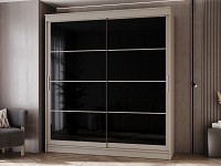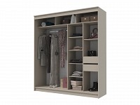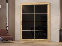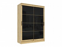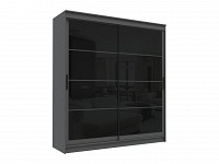 Отделение с продольной штангой для вешалок и удобные полки для сложенных вещей позволят организовать порядок во всех категориях одежды. Раздвижные дверцы с плавным ходом обеспечат быстрый доступ к содержимому. Глянцевые вставки из черного лакобеля — стильное решение в дизайне модели.