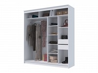 Практичное внутреннее наполнение позаботится об удобном хранении одежды из деликатных тканей, сложенных вещей, белья, обуви и аксессуаров. Гладкие матовые фасады обеспечивают легкий уход за мебелью, а система направляющих позволяет дверцам передвигаться практически бесшумно.