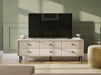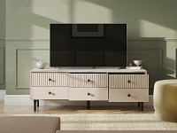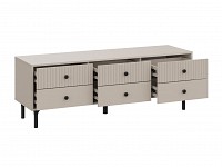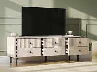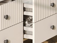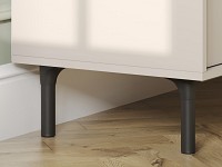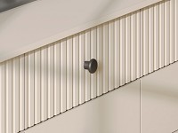Компактные выдвижные ящики идеально подходят для хранения полезных мелочей. Элегантный дизайн с вертикальной фрезеровкой на фасадах и ножки в цвет фурнитуры делают модель настоящим украшением интерьера.