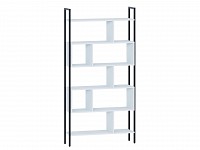 Конструкция без задней стенки обеспечивает легкий доступ к содержимому и позволяет удобно размещать книги, документы и декор. Металлический каркас с регулируемыми подпятниками делает стеллаж устойчивым даже на полу с небольшими перепадами высоты. Мебель можно использовать для деления на зоны.