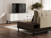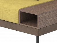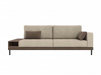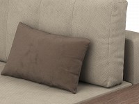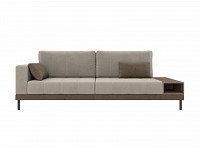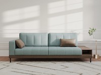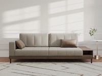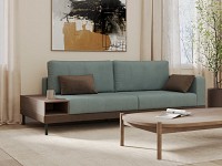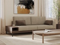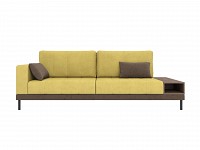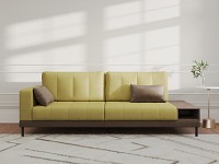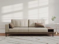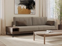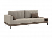 Мягкие приспинные подушки помогут расслабиться и занять удобное положение во время отдыха. Встроенная боковая ниша обеспечит практичное хранение различных мелочей. Деревянный каркас подарит конструкции надежность и прочность. Обивка выполнена из износостойкой ткани, а декоративная строчка придает мебели элегантность. Высокие ножки облегчают уборку напольного покрытия и добавляют интерьеру визуальной легкости.