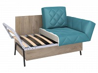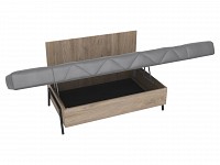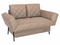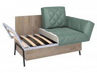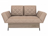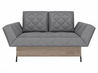 Мягкие подушки с декоративной стежкой обеспечивают комфорт во время отдыха. Подлокотники регулируются: их можно установить под углом, сэкономив пространство, а также разложить, увеличив количество посадочных мест или превратив диван в ровную зону для сна. Короб в основании подходит для хранения постельных принадлежностей, а высокие ножки упрощают уборку.