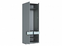 Для хранения одежды, игрушек и книг предусмотрена функциональная шкафная группа с удобными секциями. Рабочий уголок с просторным столом и тумбой — практичное решение для учебы и творчества. Стильные фасады с фрезеровкой наполняют пространство светом и создают уютную атмосферу.
