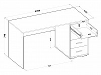 Просторная поверхность идеально подходит для ноутбука, настольной лампы и канцелярских аксессуаров. Тумба с выдвижными ящиками позволяет аккуратно хранить необходимые документы и файлы. Лаконичный дизайн и простой в уходе материал — важные преимущества модели.