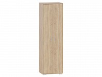 Внутри узкой конструкции расположены выдвижная поперечная штанга для плечиков и полки, куда можно поставить сумку и сменную пару обуви. Лаконичный дизайн и практичное наполнение делает шкаф универсальным решением для современного дома или офиса.