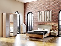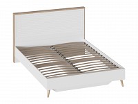 Высокое изголовье со стильной фрезеровкой гармонично дополняет текстуру дерева. Тонкие симметричные линии подчеркивают строгую геометрию модели. Ламельное основание обеспечивает хороший воздухообмен с матрасом. Благодаря высоким ножкам конструкция смотрится легко и невесомо.