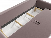 Прочный раскладной механизм подходит для ежедневной эксплуатации и быстро превращает диван в полноценную кровать. Двухсекционный бельевой короб предоставляет просторное место для хранения постельных принадлежностей. Спинка обита основной тканью, поэтому с помощью модели удобно зонировать комнату.