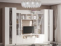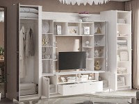 В боковых секциях можно разместить одежду и текстиль для дома. Открытые ниши позволяют продемонстрировать коллекцию книг и предметов декора, которые добавят интерьеру стильные детали. Стеклянные створки придают комнате особый шарм, а благодаря качественной фурнитуре пользоваться мебелью легко и приятно.