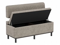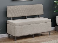 Модель можно использовать для отдыха, в качестве дополнения обеденной зоны или как банкетку в прихожей. В основании расположена вместительная ниша для хранения. Небольшие ножки позволяют легко проводить уборку напольного покрытия.