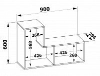 Изделие выполняется из ЛДСП толщиной 16 мм, края обработаны кромкой ПВХ 0,4 мм. Стеллаж устанавливается на пластиковые опоры.