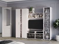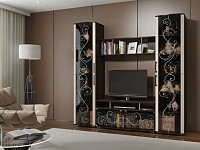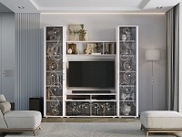Пескоструйный рисунок и стразы Swarovski превращают гостиную в роскошное украшение интерьера. Крупный рисунок и стекло частично скрывают содержимое, поэтому в шкафу можно хранить не только красивые сувениры и посуду, но и обычные вещи, необходимые в повседневной жизни.