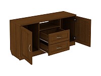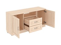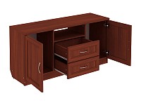 практичное наполнение — помимо основных отделений у тумбы есть выдвижные ящики и открытая ниша;