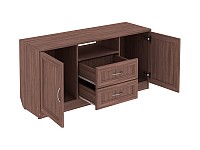 Открытая ниша идеально подойдет для размещения игровой консоли и другой техники. Выдвижные ящики подойдут для хранения разных мелочей.